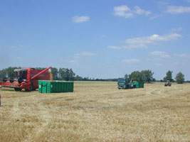 Der Landwirt kann sich auf diese Weise voll auf die Ernte konzentrieren und braucht sich nicht um den Abtransport des Getreides zu kümmern.